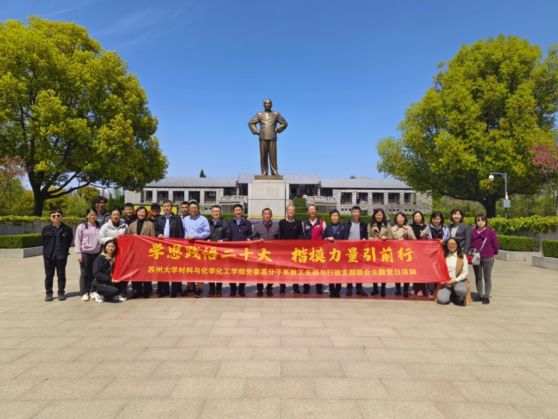 为深入学习宣传贯彻党的二十大精神,感悟伟人风范,传承红色基因,勇担责任使命,4月8日,苏州大学材料与化学化工学部党委高分子教工支部与行政支部组织党员赴淮安瞻仰周恩来纪念馆和周恩来故居,开展主题为“学思践悟二十大,楷模力量引前行”的廉洁教育暨主题党日活动。