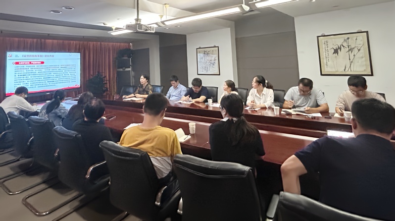 李伟文领学《论党的自我革命》中关于“坚定不移全面从严治党,深入推进新时代党的建设新的伟大工程”和“认真学习党章,严格遵守党章”等章节内容。要求纪检干部以自我革命的精神打造纪检铁军,推进全面从严治党。