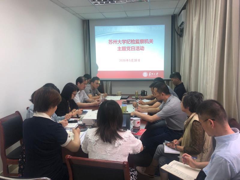 2020年5月28日上午,纪检监察党支部全体党员在纵横楼149会议室参加 “打铁必须自身硬”系列主题党日活动。