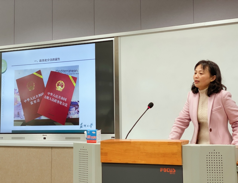 12月9日,纪检监察党支部和社会学院本科生党支部于独墅湖二期1005号楼5433会议室联合组织开展政务处分法专题学习会,纪检监察党支部书记陶培之做了题为《学习政务处分法 模范遵守党纪国法》的讲座。社会学院党委副书记副院长郝珺以及其他党支部纪检委员也参加了学习会。社会学院党委书记邓国林主持讲话并参与共建互动。