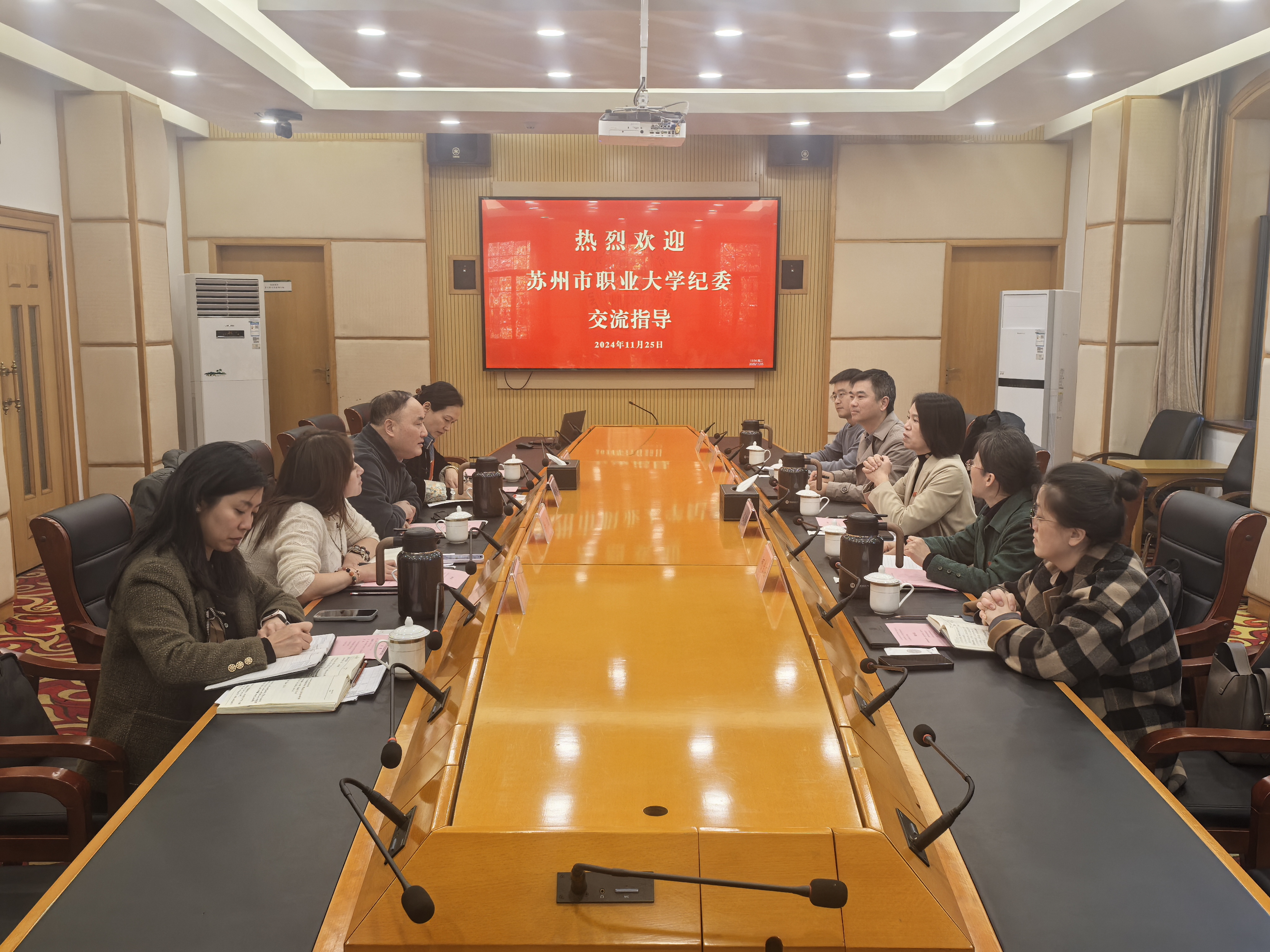11月25日下午,苏州职业技术大学党委委员、纪委书记庄剑英一行5人来校调研交流,双方在天赐庄校区红楼201会议室召开调研会。会议由校党委常委、纪委书记、派驻监察专员宫向阳主持。