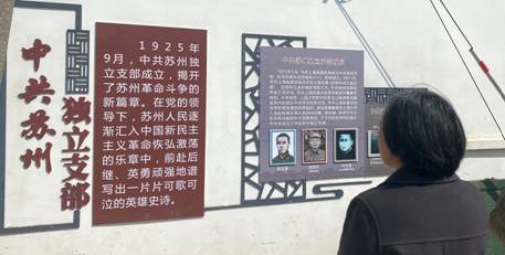 在体育场路的中共苏州独立支部旧址,支部副书记江建龙回顾了苏州第一个党组织——中共苏州独立支部的建立发展过程。1925年,苏州独立支部成立,揭开了苏州革命斗争的新篇章,在党的领导下,苏州人民逐渐汇入中国新民主主义革命恢弘激荡的乐章中,前赴后继、英勇顽强地谱写出一片片可歌可泣的英雄史诗。