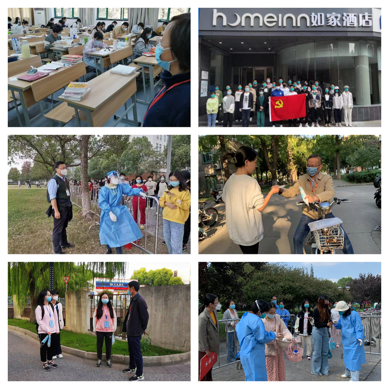 党员们努力克服个人和家庭的各种困难,有的第一时间服务在学生转运隔离观察的最前线,有的家中宝宝嗷嗷待哺却毅然留在了静默的校园,有的不顾年老体弱仍奔波在校区各个角落,有的感冒生病仍然奋战在志愿服务的第一线……所有人都积极投身校园抗疫行动。在做好督查工作之余,支部党员也积极参与疫情防控志愿服务工作,累计派出3人次参与浴室疫情防控工作,引导学生有序排队做核酸、去浴室、购物资,用满腔热血换取师生身体健康,用满身汗水换来美丽校园平安!
