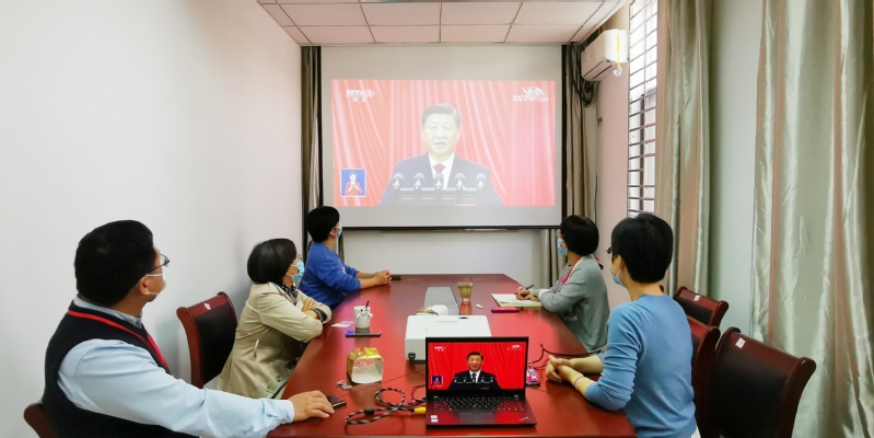 在党的二十大隆重开幕之际,支部组织在校党员在纵横楼149会议室集中收看、居家办公党员自行收看开幕盛况,认真聆听和学习习近平总书记代表十九届中央委员会所作的工作报告。